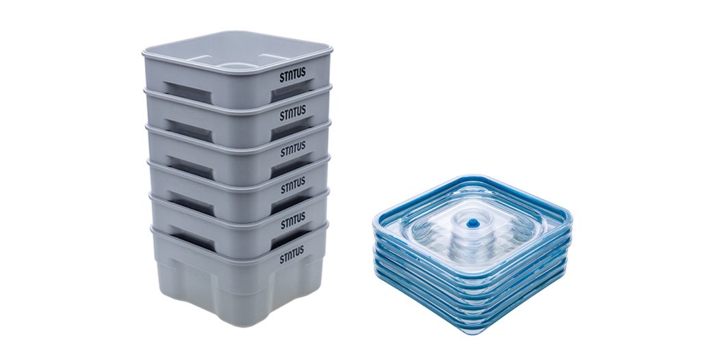 U Statusu nudimo i rješenje za vaš postojeći inventar gastronorm posuda. Razvili smo vakuumske poklopce za GN posude. Jednostavno odaberete odgovarajuću veličinu i postojeće GN posude pretvorite u vakuumske posude za skladištenje. Na raspolaganju su poklopci veličine 1/2, 1/3, 1/4, 1/6 i 1/9. Poklopci su napravljeni od izuzetno izdržljivog tritana, koji osigurava dugogodišnju upotrebu čak i u najopterećenijim profesionalnim kuhinjama. GN vakuumski poklopci su kompatibilni s gastro vakuumskom pumpom Status ili s bilo kojim Status vakuumskim aparatom.