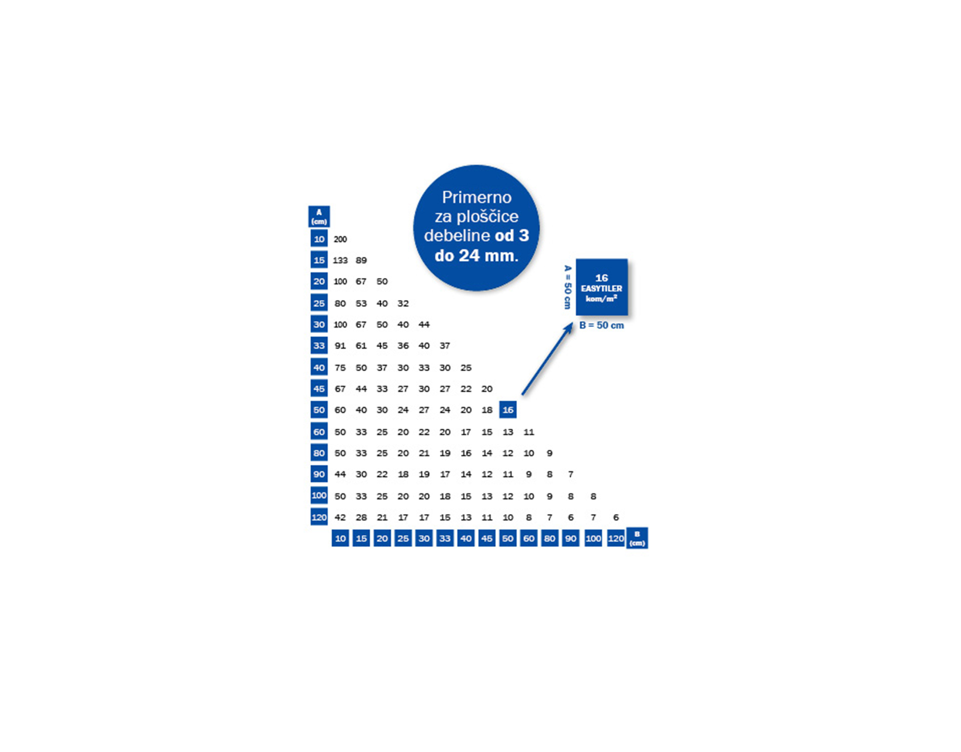 Za postavljanje debljih pločica (od 15 do 24 mm) koristite EasyTiler visoke spojke. Ako želite šire fuge, koristite EasyTiler plavu spojku s pecljem 3 mm. Sve vrste spojki prikladne su za korištenje s osnovnim EasyTiler klinovima.
