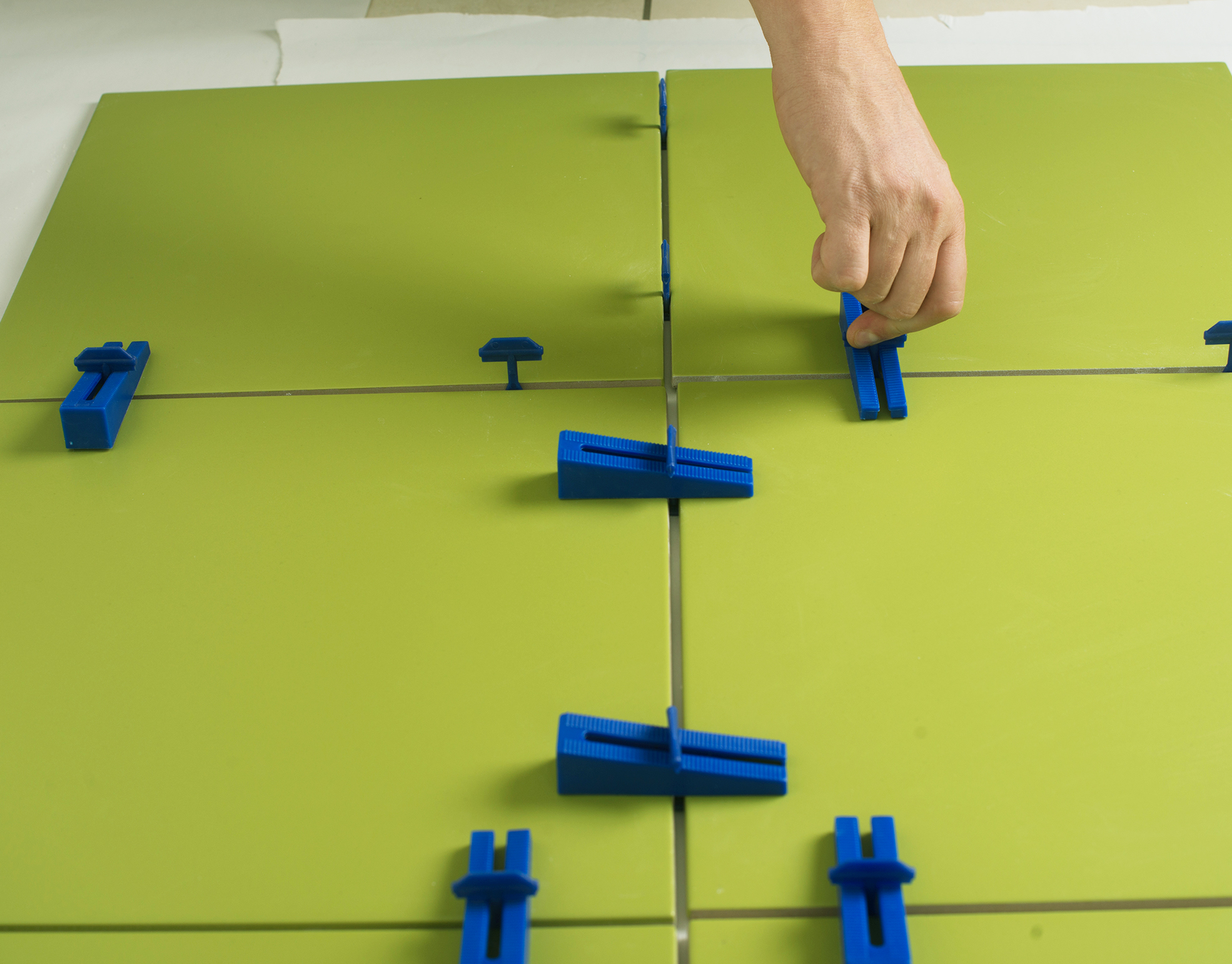 Kline in spojke EasyTiler lahko zategujete ročno, vendar pri večjih površinah priporočamo uporabo talnih ali stenskih klešč.
