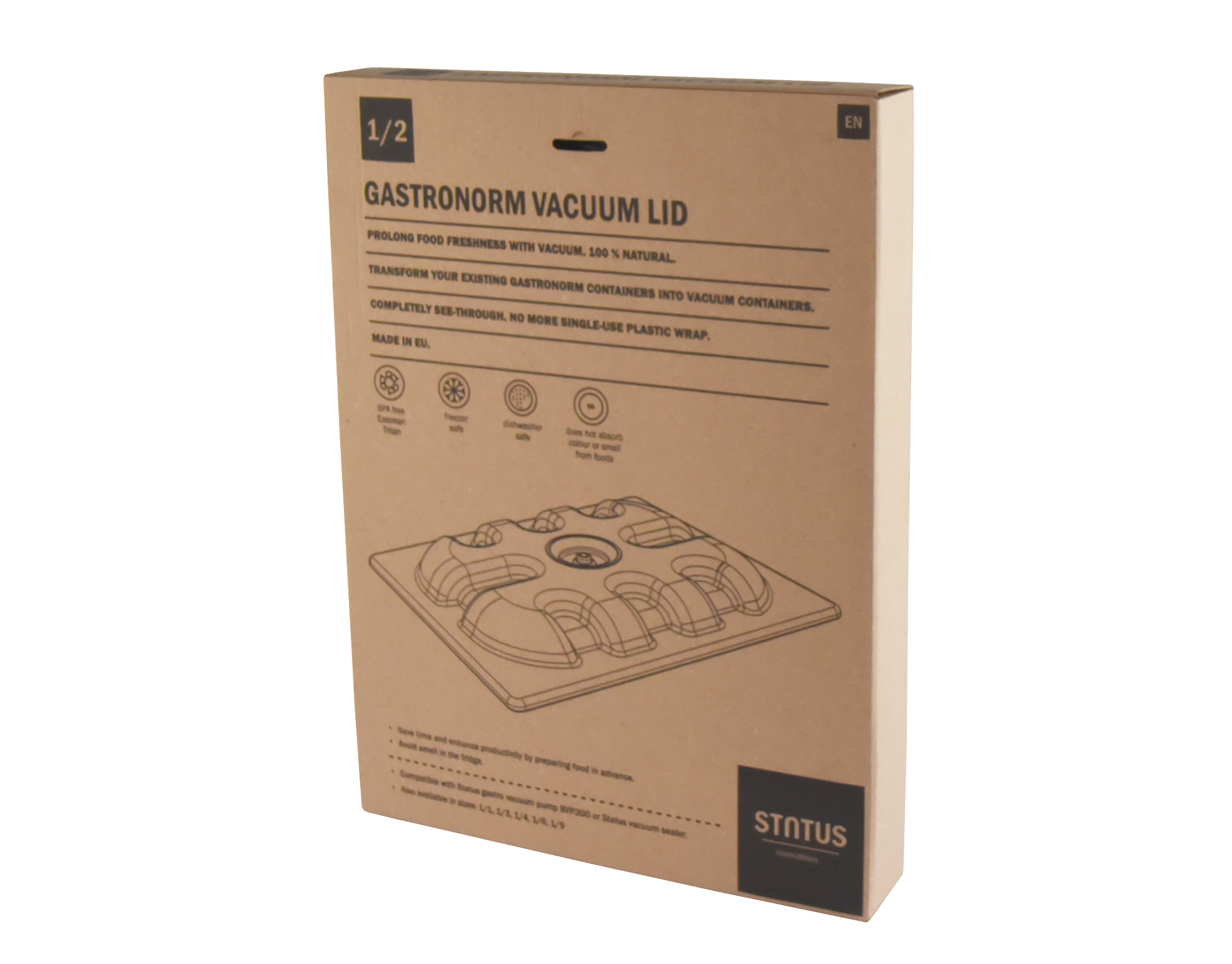 Statusovci pažljivo pratimo želje i potrebe korisnika, stoga smo razvili vakuumske pokrove za profesionalne GN posude. GN vakuumski pokrov 1/2 odgovara inox GN posudi 1/2. Upotreba je jednostavna i doprinosi uštedi vremena i novca u profesionalnim kuhinjama te smanjenju plastičnog otpada. Plastična i alu folija za jednokratnu upotrebu koriste se vrlo kratko, a u prirodi se razgrađuju više stotina godina.