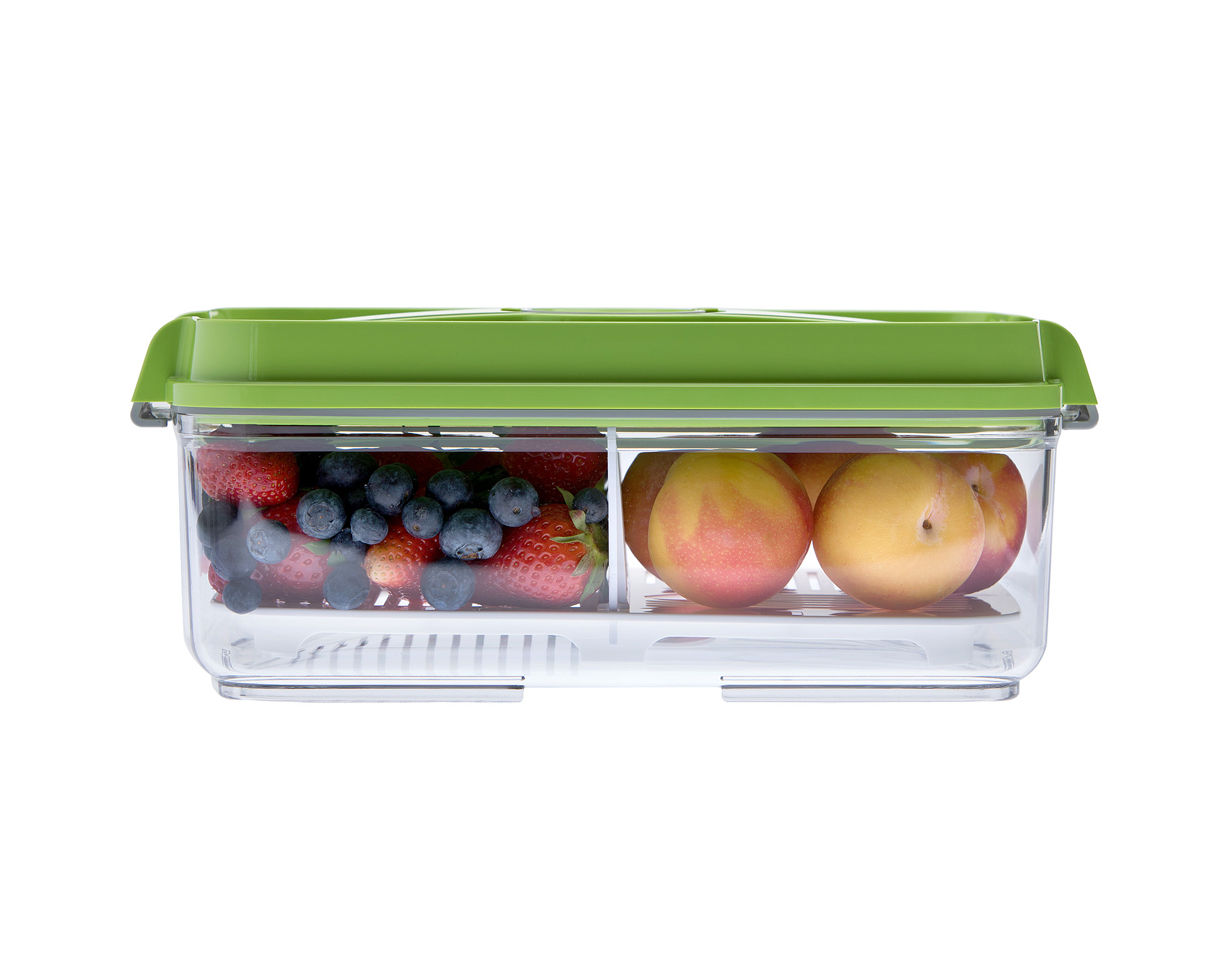 Potrebujete posudu u koju biste mogli pohraniti cijela jabuka ili svježe pečene peciva? Želite produžiti svježinu namirnica, a da pritom ne promijenite njihov izvorni okus? Rješenje je vakuumsko pohranjivanje. Pravokutna vakuumska posuda (3 litre) je pravi izbor ako želite kvalitetno pohraniti voće i povrće – u komadu ili kao unaprijed pripremljen ručak.