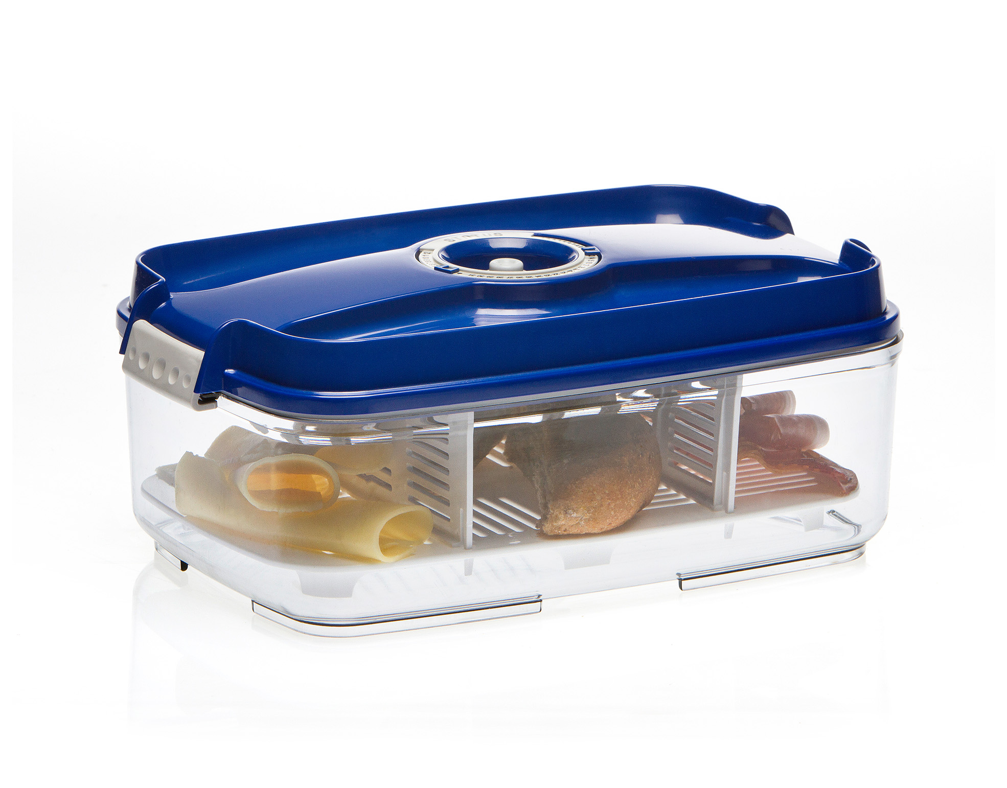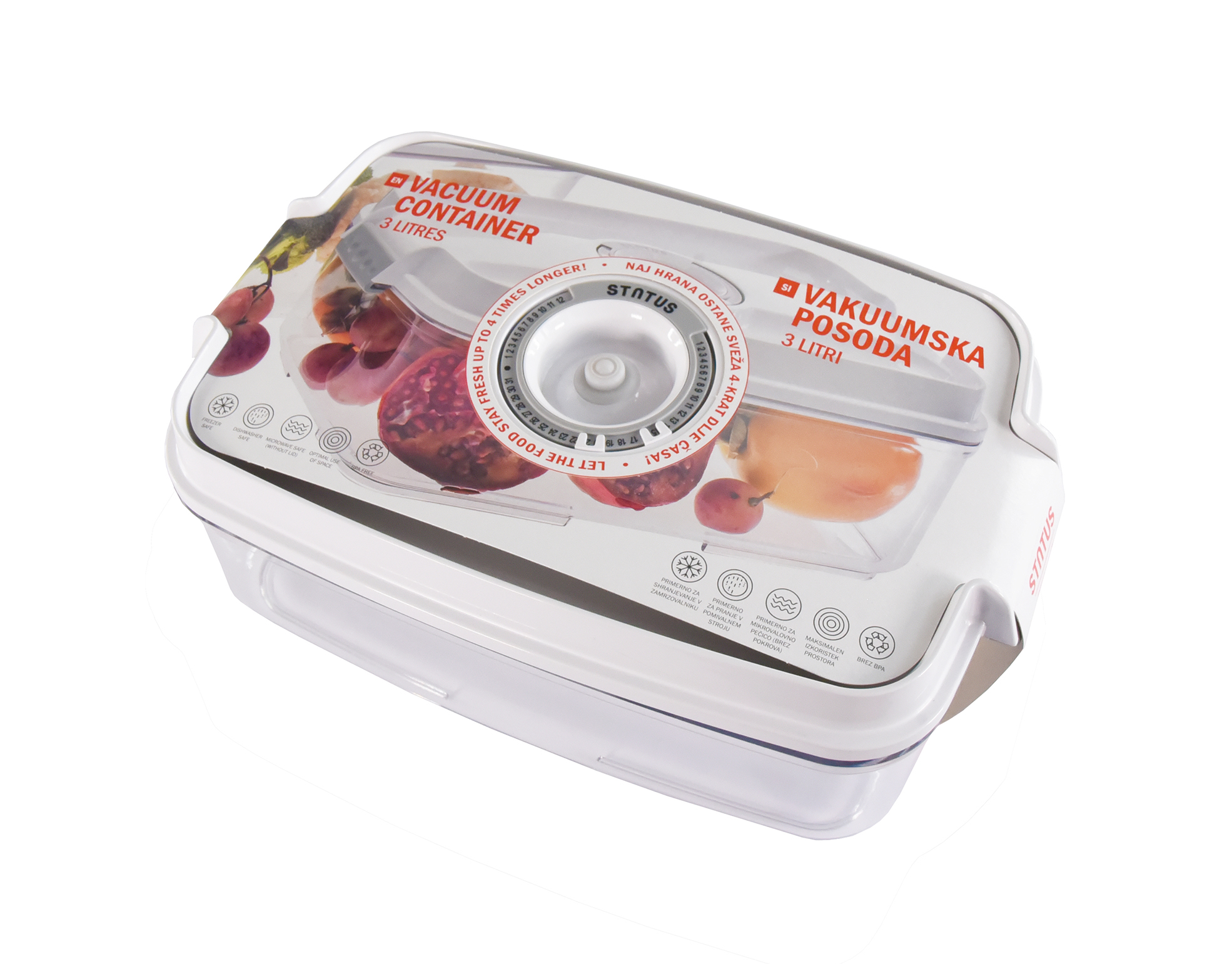 Vakuumsko pohranjivanje je najprirodniji način produžavanja svježine namirnica. Postupak je jednostavan. Vakuumskom pumpom uklonite kisik iz posude i time spriječite razvoj plijesni i bakterija, koje uzrokuju kvarenje namirnica. Sprečavanjem oksidacije produžavate trajnost namirnica do četiri puta i također stvarate uvjete za bolju trajnost minerala i vitamina. Za vas to ima dvije ključne prednosti – bacat ćete manje hrane i jesti kvalitetnije namirnice!