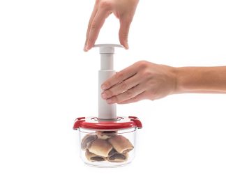 Vakuum je prostor bez zraka. Stvaramo ga ispumpavanjem zraka iz ambalaže koja je nepropusno zatvorena posebnim poklopcem s vakuumskim ventilom. Prednost vakuumskog skladištenja je sprečavanje oksidacije, koja uzrokuje propadanje hrane. Mikroorganizmi naime trebaju kisik za rast i razvoj. Za vas to znači da produžavate trajnost namirnica na potpuno prirodan način i bez dodataka te tako smanjujete količinu pokvarene i bačene hrane u svom domaćinstvu.