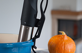 Status SVC100 kuhalo ima posebnu ručku s kojom ga pričvrstite na rub lonca. Preporučamo upotrebu 6 do 15-litrenog lonca, jer plastične posude lošije zadržavaju temperaturu vode.