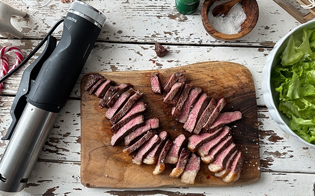 Steak, pripremljen s tehnikom Sous Vide, je sočan i pun okusa, jer se u vakuumskoj vrećici kuha u vlastitom soku.