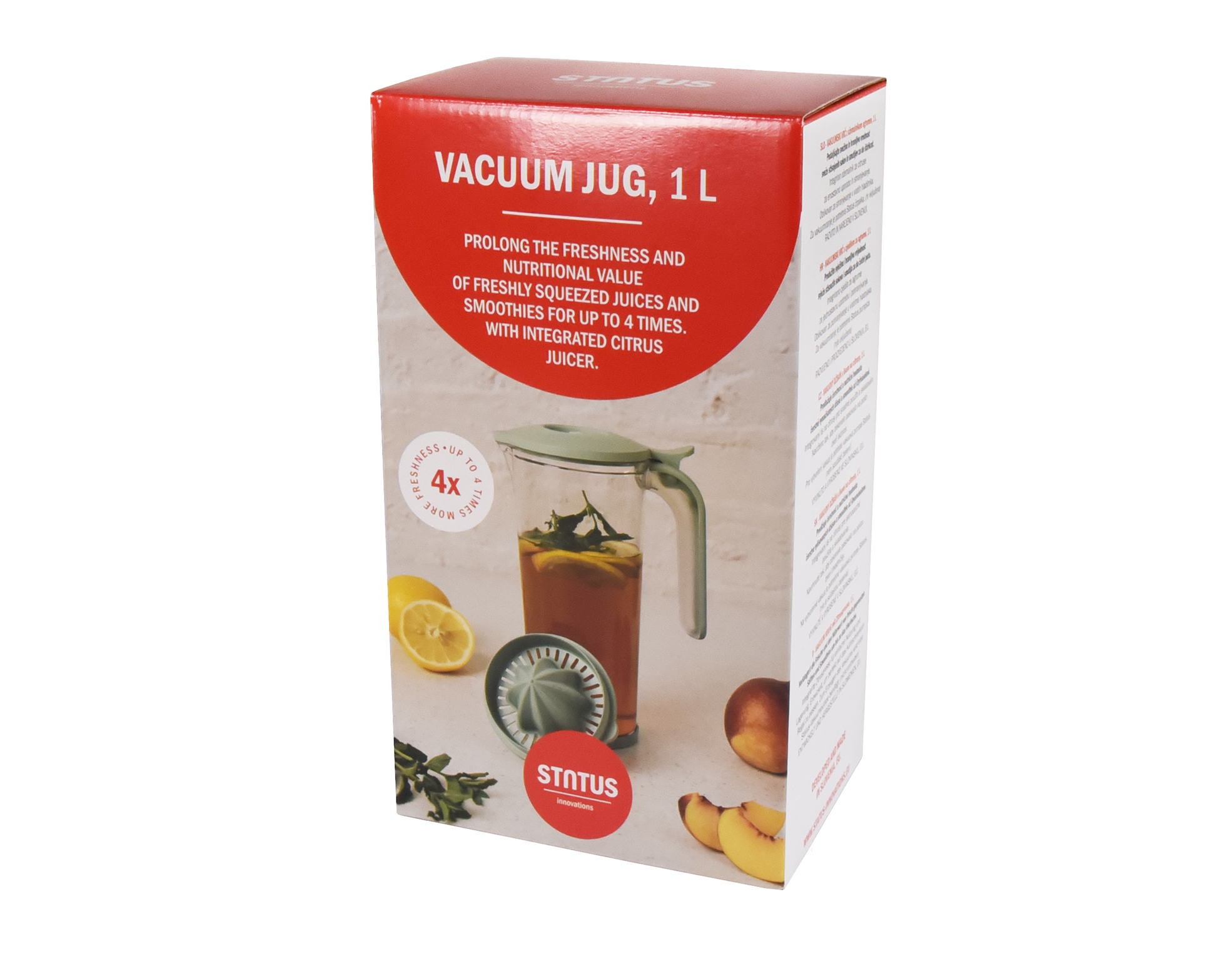 Vakuumski vrč s cjedilom namijenjen je pripremi i čuvanju svježe cijeđenih sokova, limunade i smoothieja. Djeluje tako da sprječava utjecaj kisika na napitak. Naime, kisik uzrokuje promjene koje primjećujemo – promjena boje i okusa – ali i nevidljive promjene poput propadanja vitamina i minerala, osjetljivih na kisik.