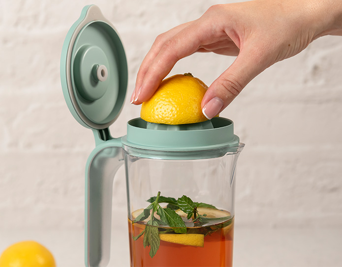 Statusov vrč ima dodano cjedilo za agruma, koje jednostavno namjestite na otvor te neposredno u vrč ocijedite limun, limetu ili naranču. Cjedilo se praktično posprema u vrč, kad nije u upotrebi. Tako vam je uvijek pri ruci, kad ga trebate.
