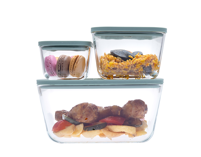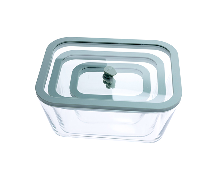 Viva staklene posude za vakuumiranje su odličan odabir za sva kućanstva. Koristite ih za pripremu obroka u jednoj posudi – za manje prljavih posuda i manje čišćenja. Ili za spremanje ostataka jela – kako bi manje hrane završilo u smeću. Pri oblikovanju posuda smo se pobrinuli da optimalno iskoriste prostor u kuhinji. Prazne posude se pospremaju jedna u drugu, pune se slažu jedna na drugu.