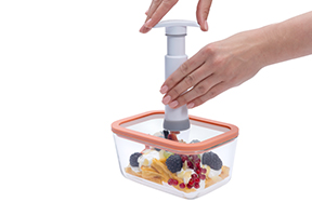 Ručnu pumpu namjestite oko ventila na poklopcu i izvucite zrak. Optimalan vakuum je postignut kada osjetite lagani otpor u pumpi.